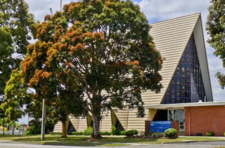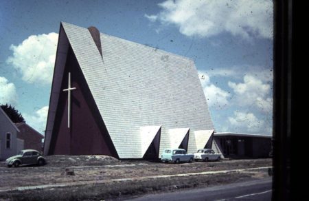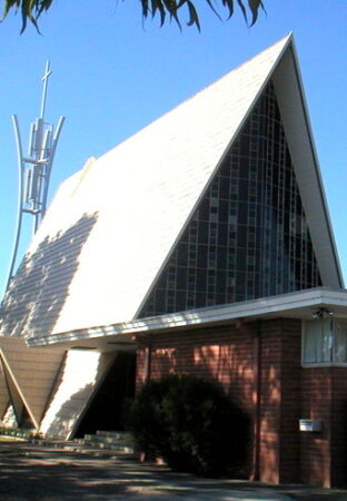 The late 1950s and the early 1960s saw the orchards and market gardens giving way to residential urban sprawl. When the need for more space became evident, the new A-frame church building was opened in October 1961. Sometimes called “K-Mart Uniting” due to its location, it became well recognized in the community and its innovative design later earned a heritage listing.