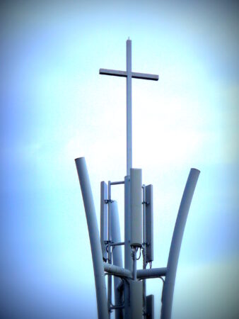 1999 – Telstra erected a striking white tower on the corner, with a cross that is lit at night.