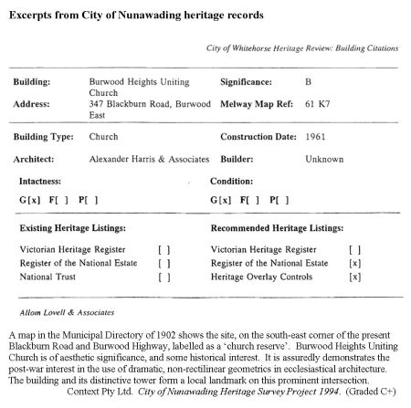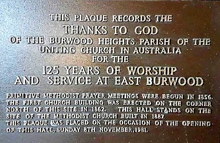 Methodist churches in Australia merged with the Congregationalists and Presbyterians to form the Uniting Church in 1977. Three churches – East Burwood Methodist,
